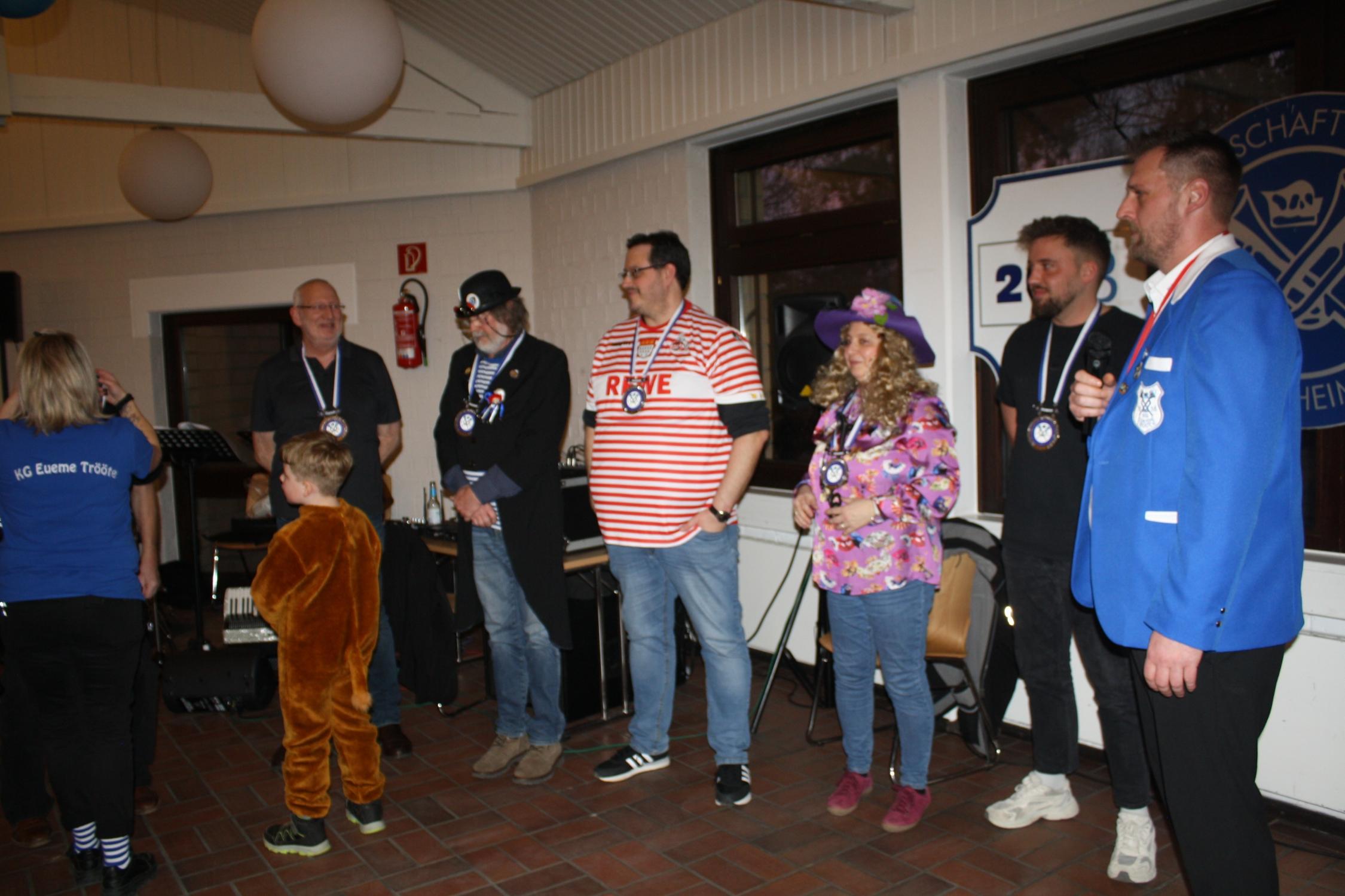 Zur großen Freude aller Beteiligten sorgte schon vor dem „offiziellen Beginn“ um 14.30 Uhr die „Band Eich & Co“ bestehend aus inzwischen 6 Musikern in gewohnt professioneller Manier mit traditionellem Karnevalsliedgut direkt für eine gute (Ein-)Stimmung im Saal.